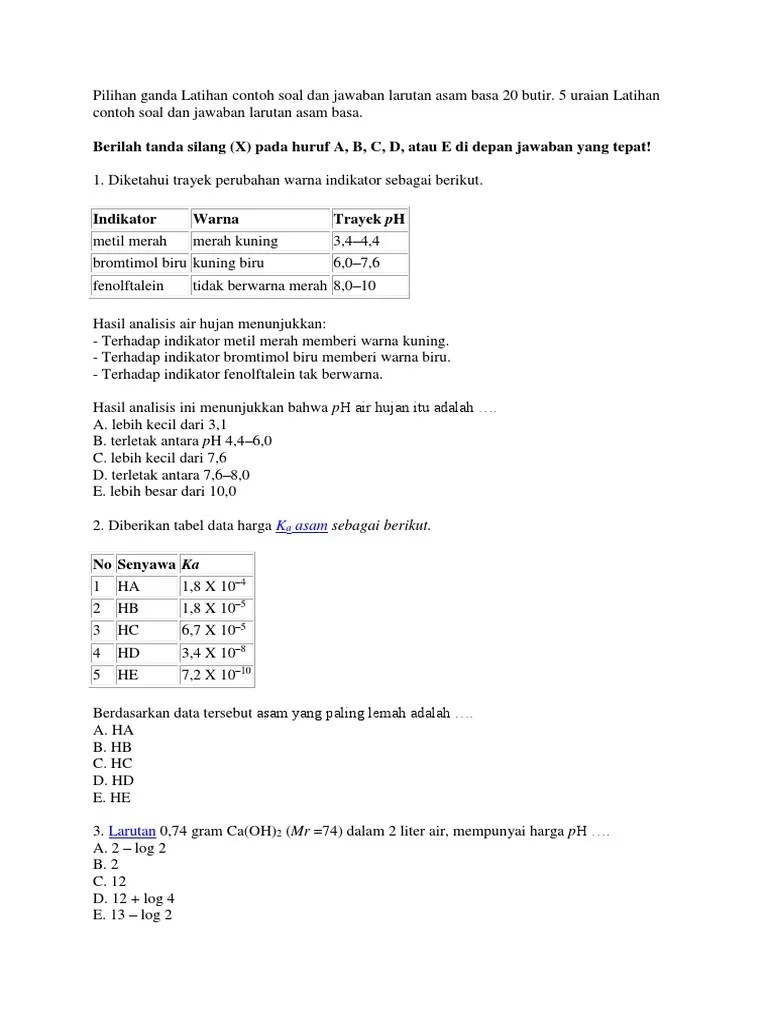 15+ Contoh Soal Ulangan Asam Basa
