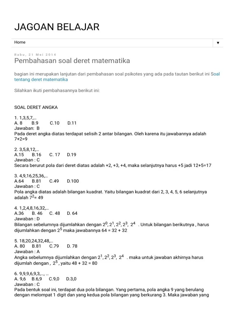 40+ Contoh Soal Deret Angka Ppg